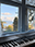 Dynamic window reflections on Seattle street invade a theatre stop motion encounter with reflected thought and subtle color shadow auras. In foreground, the blue bird (representing lively awareness) soars above watery emotion pools leaving "cloud trails" made of paperclay porcelain. These sculptures appear to "float" on clouds of air. Rosette Gault exhibition/installation at Nordstroms Flagship Window in downtown Seattle, 2012